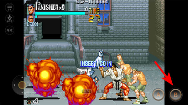 4、观察场景中的敌人分布,结合左侧操控盘调整角色位置,同时配合A/B键的攻击操作,逐步推进关卡,完成战斗目标。