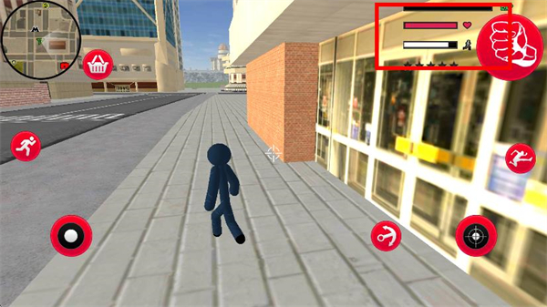 3、随性动作互动:界面的技能按钮支持释放攻击、特殊动作,既能和城市中的物品互动破坏,也能自由施展动作,没有任务限制。