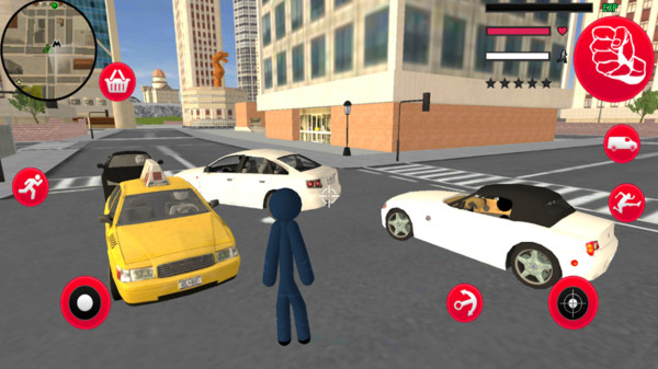 无敌设定让角色无需担心伤害、血量消耗,可放心在城市中自由探索、尝试各类动作操作,彻底摆脱生存压力,专注于攀爬、穿梭的冒险乐趣,适配纯休闲的游玩节奏。角色支持行走、蹲伏等多种移动姿态,既能在开阔街道快速行走,也能在狭窄区域蹲伏穿梭,不同姿态适配不同城市场景,让移动操作更贴合探索需求。城市场景涵盖街道、建筑、屋顶等多样区域,从地面人行道到高楼顶部,均可借助绳索自由抵达,无边界的探索空间让每一次冒险都有新的场景体验。将毒液的暗黑风格与火柴人的简洁造型结合,黑色躯体+夸张姿态的设计,既保留了火柴人休闲游戏的轻松感,又融入了超级英雄的酷炫特质,视觉记忆点鲜明。