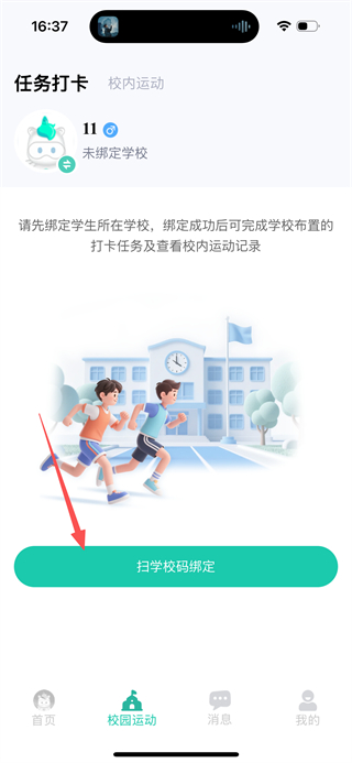 2、在校园运动页面点击扫学校码绑定按钮,进入扫码页面。