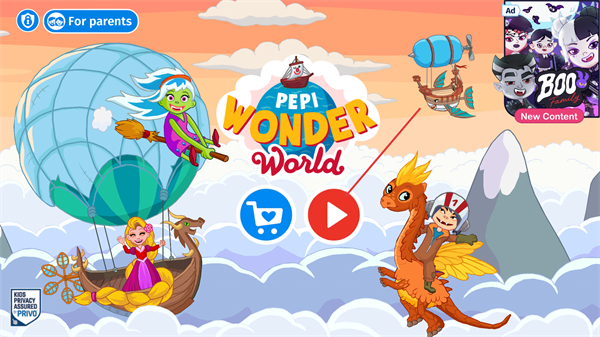 1、打开佩皮世界游戏后,找到界面中的红色播放按钮并点击,即可进入该游戏的主世界相关界面。