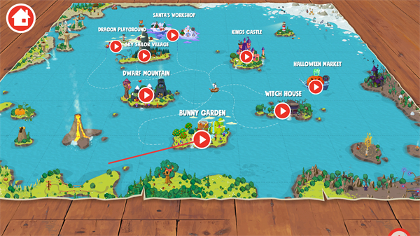2、进入游戏的地图界面后,选择DragonPlayground、KingsCastle等区域,点击对应区域的红色播放按钮进入游玩。