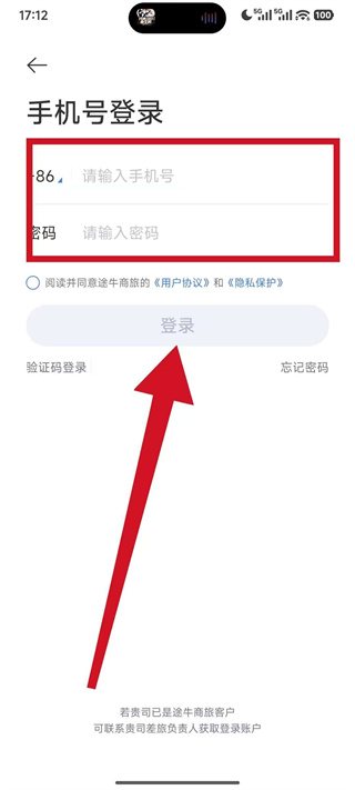 4、在手机号登录页面填写请输入手机号、请输入密码,勾选协议后点击登录,即可完成账号登录。