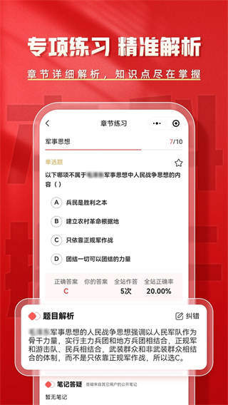 界面与功能设计充分考虑军考备考的实际场景与用户习惯,操作直接,重点突出,营造专注、高效的沉浸式学习体验。