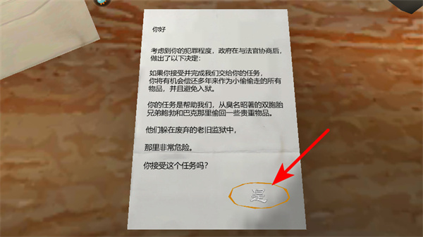 1、进入任务对话界面后,点击红色箭头指向的是按钮,接受当前任务,开启游戏冒险的关键操作。