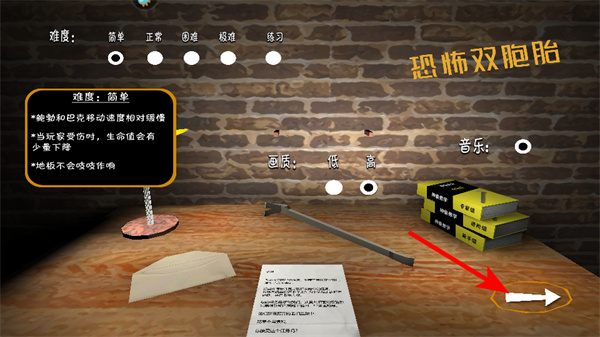 提供多种难度选项,不同难度下双胞胎出现频率、木偶人巡逻路线有差异,既满足新手玩家的探索需求,也能让资深玩家体验更高强度的逃生挑战。