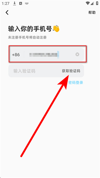 3、在注册页面的输入框中填写要注册的手机号,然后点击获取验证码,获取短信验证码。