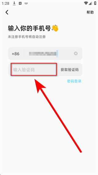 4、将收到的短信验证码填入验证码输入框,即可完成新账号的注册。