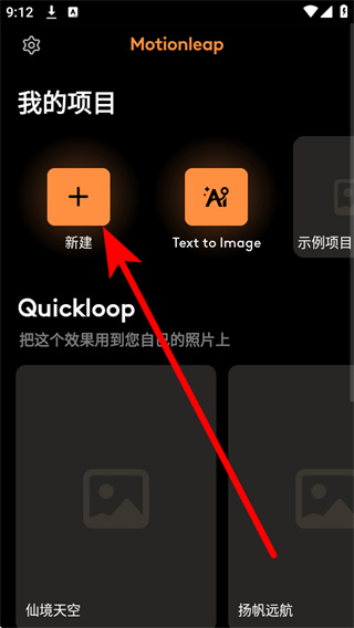 1、打开Motionleap,在我的项目页面点击新建,进入相册选择界面。