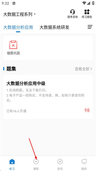 1、在365职称首页,点击底部的课程选项,可进入课程页面。