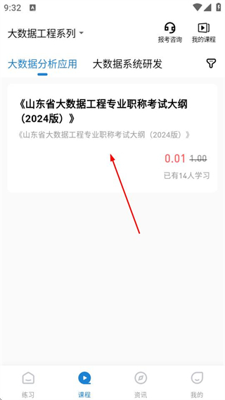 2、在课程页面,点击目标课程,可进入该课程的详情页面。