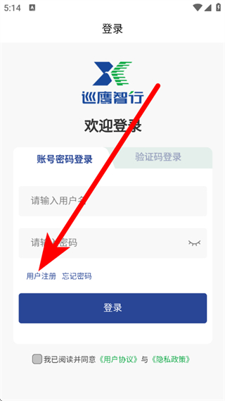 1、打开巡鹰智行,在弹窗点击同意并继续,进入登录页面。