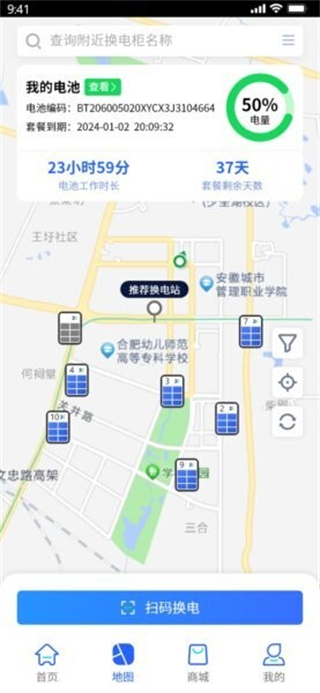 依托定位功能实时展示周边换电柜位置与距离,清晰标注柜内电池余量与使用状态,一键规划最优前往路线,快速锁定可用换电柜,高效匹配电动车换电需求。