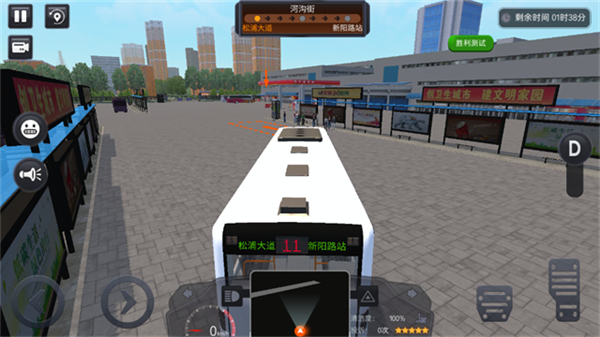 2、在河沟街站操控公交,按线路行驶,前往下一站新阳路站。