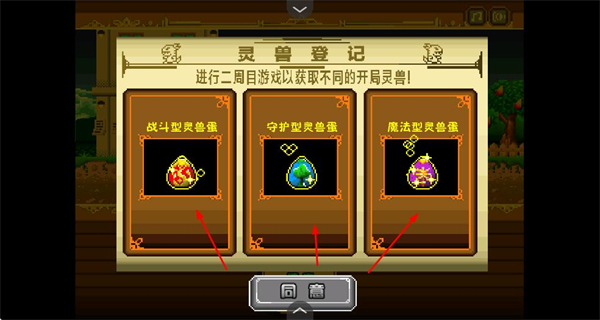 1、在灵兽登记界面选择对应的灵兽蛋,参与二周目游戏解锁不同类型的开灵灵兽。