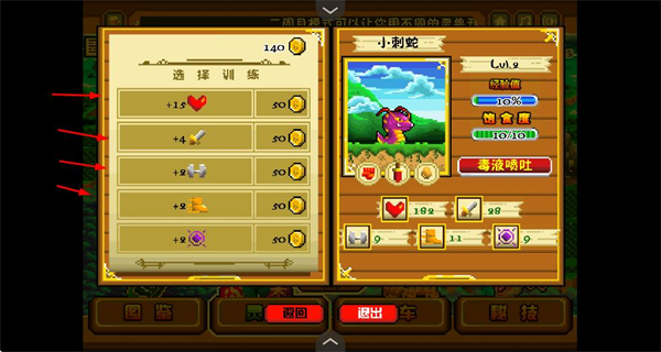 4、进入训练界面消耗资源提升灵兽属性,强化其能力,助力后续冒险与对战进程。