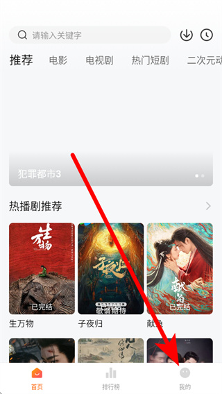 1、打开小柚子追剧,点击底部导航栏的我的,进入个人中心页面。
