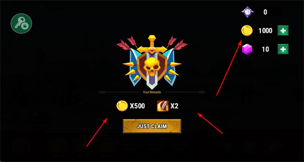 4、战斗结束后点击UST CLAIM领取奖励,获取金币、道具等资源,用于后续军团强化。