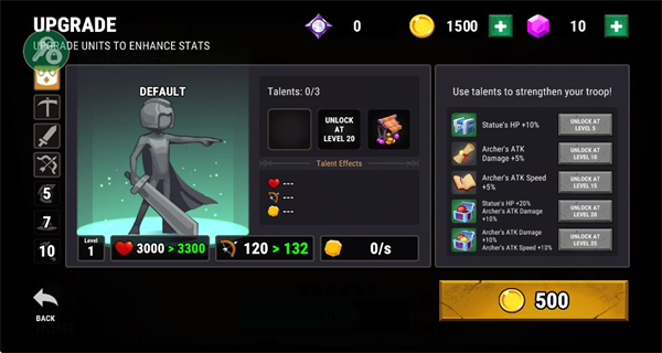 可通过战斗积累经验提升等级,解锁更强力的战斗技能与天赋,逐步强化角色的战力,打造出实力超群的专属火柴人英雄。