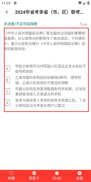 3、进入真题的答题页面,开始完成多选题、不定项选择题的作答。