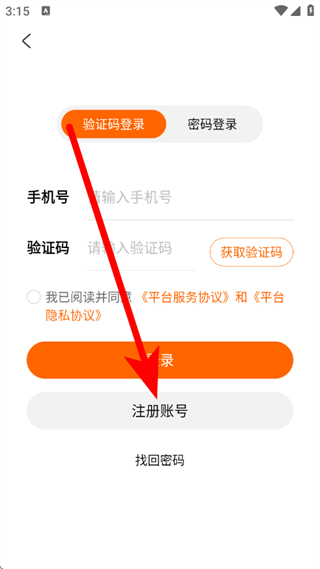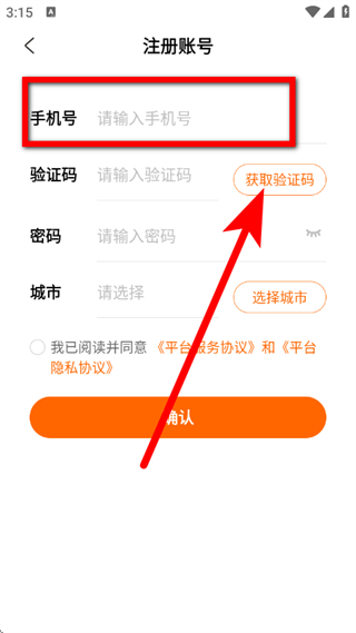 3、在注册账号页面,输入手机号,点击获取验证码。