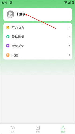 2、在个人中心页面,点击未登录区域,即可进入登录的界面。