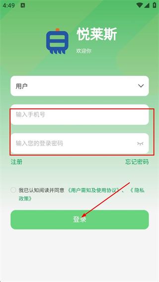 3、在登录界面,填写手机号和登录密码后,并点击登录按钮,完成登录。