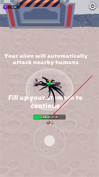 3、外星生物通过不断进食周边的人类,使得当前CARGO进度为2/4,仍需达成填饱肚子的要求以推进游戏。