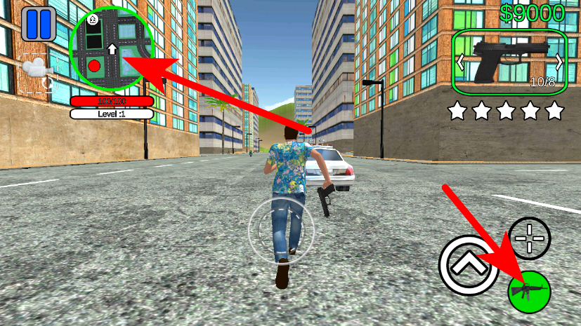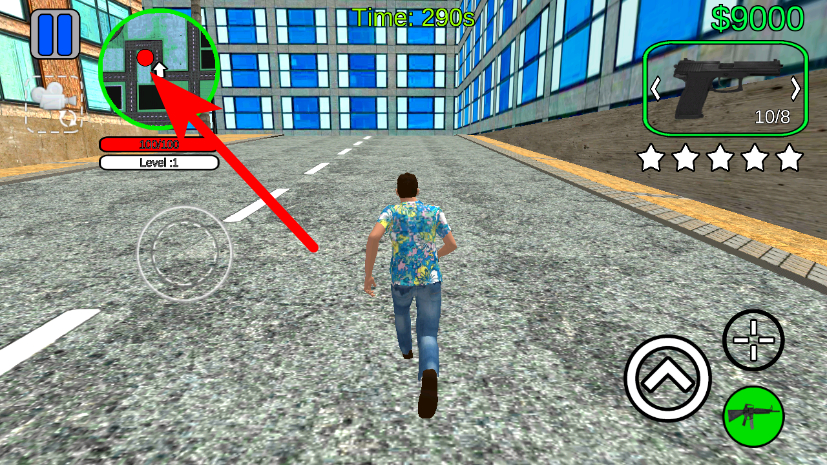 3、查看左上角地图,跟随指引前往目标位置,点击右侧武器按钮。