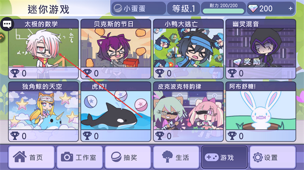 3、在迷你游戏页面,这里有太极的数学、贝克的节日、小鹅大逃亡等多款小游戏,你可选择感兴趣的进行游玩,完成游戏后能获取对应的奖励。