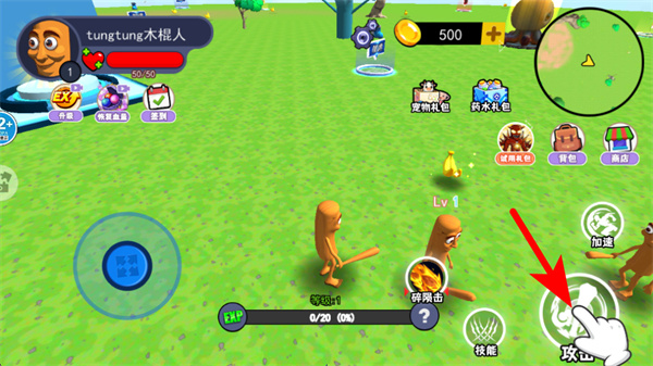 3、紧跟红色箭头指引,点击攻击按钮对目标单位如敌方木棍人发起攻击,利用角色的攻击属性削弱敌方,推进战斗流程。