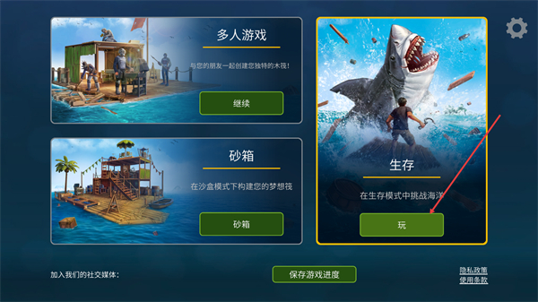 1、这是游戏的模式选择界面,找到生存模式,它的玩法是挑战海洋,点击该模式对应的玩按钮,即可进入生存模式开始游戏。