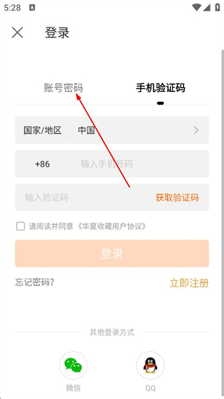 3、在登录界面,点击账号密码选项,切换至账号密码登录界面。