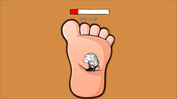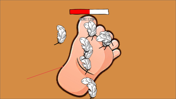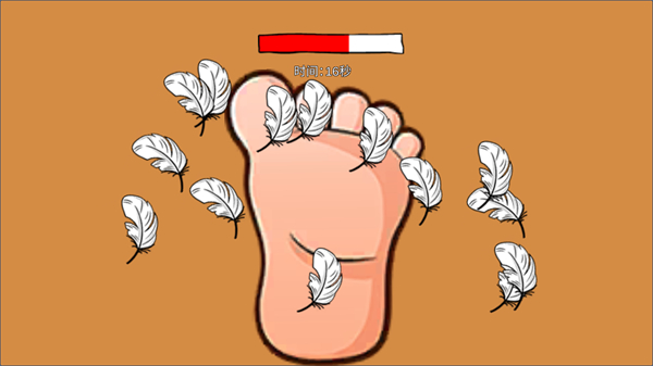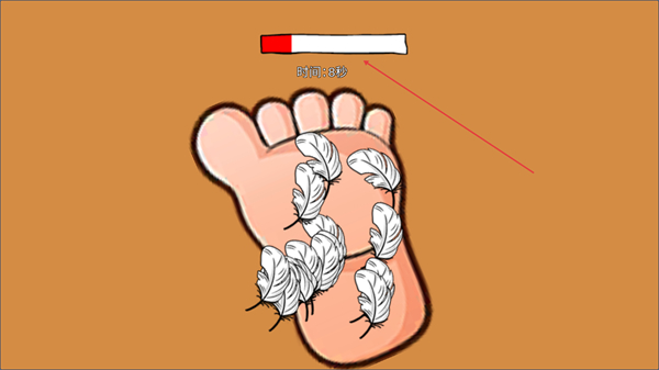 1、在脚底放置羽毛触发挠痒痒效果,观察上方时间进度条推进。