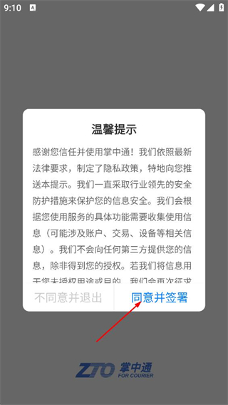 1、阅读温馨提示中的隐私政策后,点击弹窗里的同意并签署的按钮。