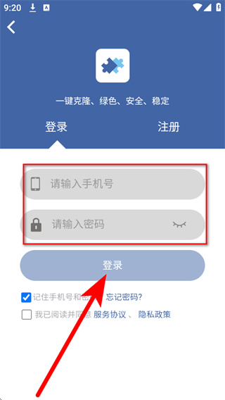 4、在登录界面填写手机号和密码,勾选相关协议后,点击登录完成账号登录。