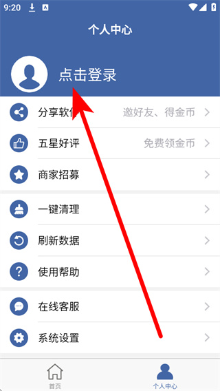 3、在个人中心页面点击点击登录区域,进入登录操作界面。