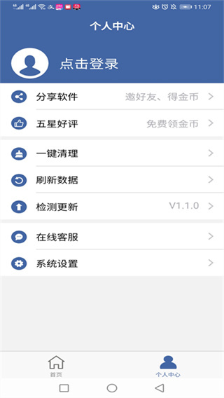 2、在首页点击底部导航栏的个人中心选项,进入个人中心页面。