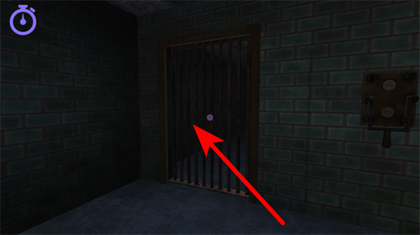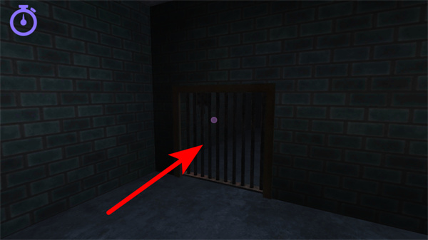 2、进入地牢后,操控角色移动到带有紫色光点的铁栅栏处,这是推进场景的关键交互点,靠近后触发后续流程。