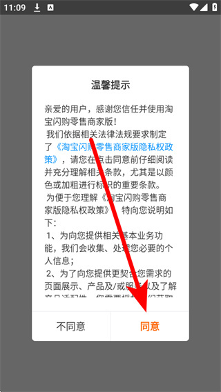 1、打开后,在弹窗中点击同意,进入登录操作界面。