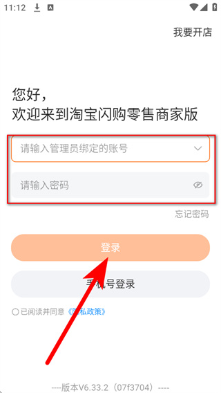 3、在账号密码登录页面,填写账号和密码,勾选相关协议后,点击登录完成账号登录。