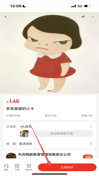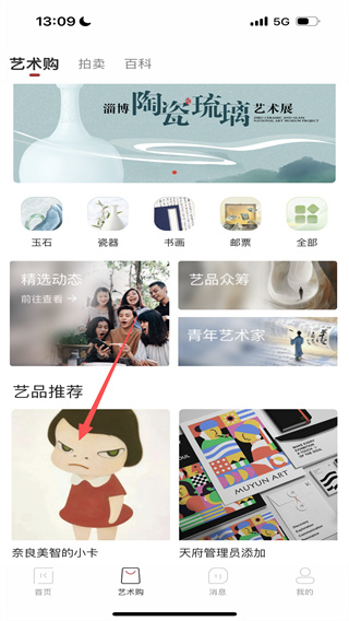 2、在艺术购页面,点击目标艺品,可进入该艺品的详情页面。