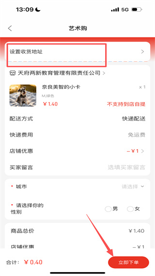 5、在订单页面,设置收货地址等信息后,点击立即下单按钮即可完成购买。