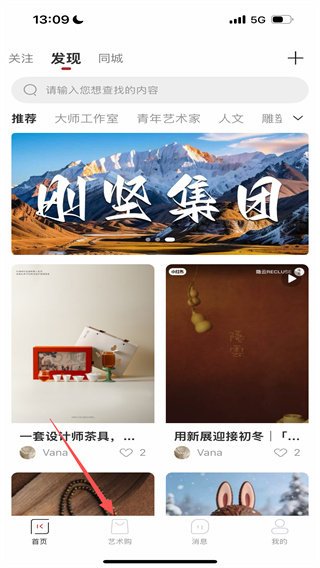 1、进入艺淘堡后,点击底部的艺术购选项,可进入艺术购页面。