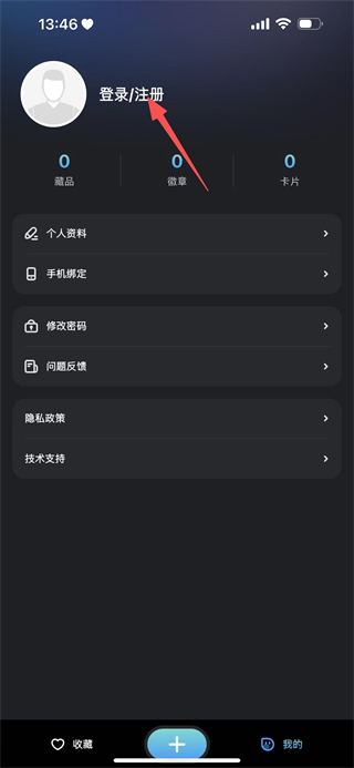 1、在应用的我的页面,点击登录/注册按钮,进入登录/注册页面。