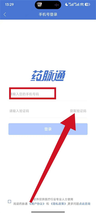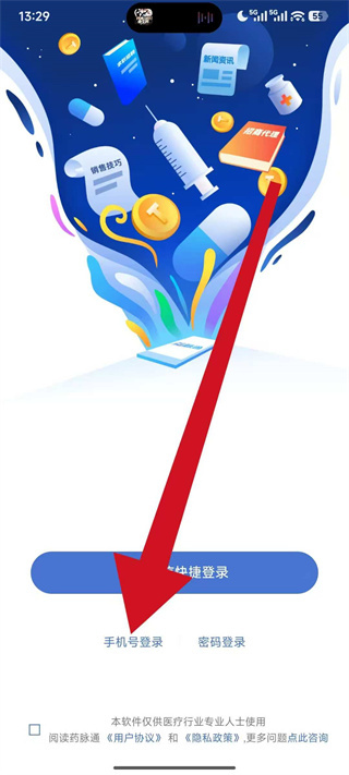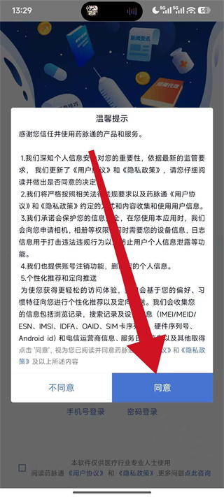 1、打开药脉通,在弹窗中点击同意,进入登录选择界面。