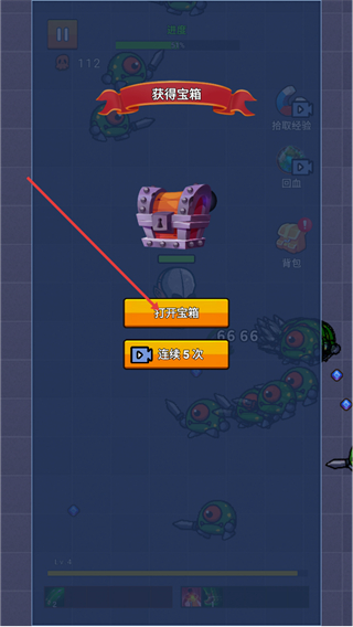 3、在战斗场景中,操控角色靠近宝箱,同时规避周围敌方单位的攻击,成功接近宝箱即可获取对应的道具奖励,推进游戏进程。