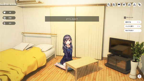2、加载完成后进入房间主场景,右侧会出现一列互动选项,点击其中任意一个选项,就能触发和房间内角色的互动。
