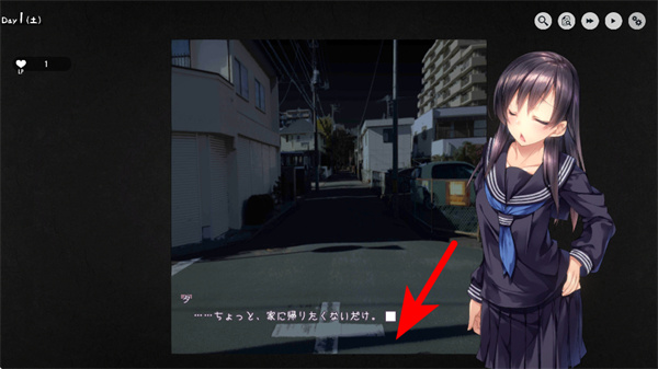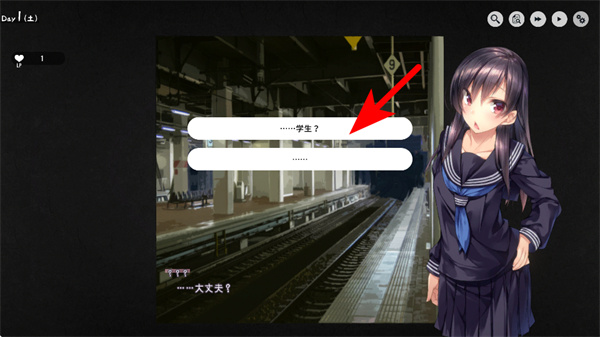 3、继续点击空白的地方,查看角色的以及旁白的走向,这能为通关积累资源,避开突现的元素。
