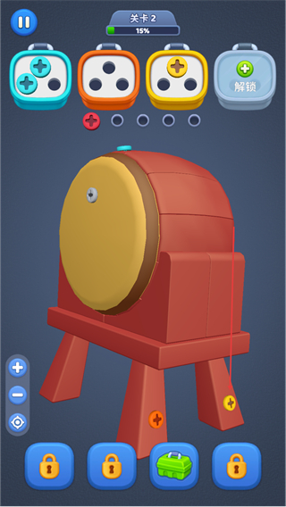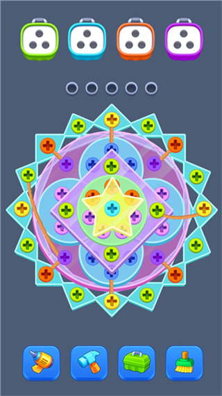 内置吸铁石、清孔位等多种功能性道具,吸铁石可一次性收集全场指定颜色的螺丝,清孔位能一键清空临时孔位,在陷入解谜瓶颈时使用可轻松扭转局势。
